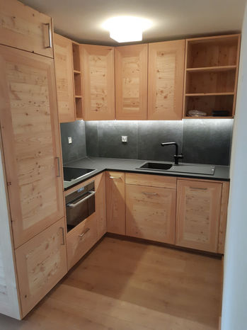 Caisson mélaminé et faces en mélèze massif.